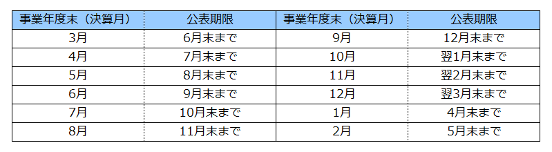 事業年度終了後、おおむね3ヶ月以内に前年度の実績を公表します。たとえば、3月決算の場合は6月末まで、9月決算の場合は12月末までを目途に公表しましょう。