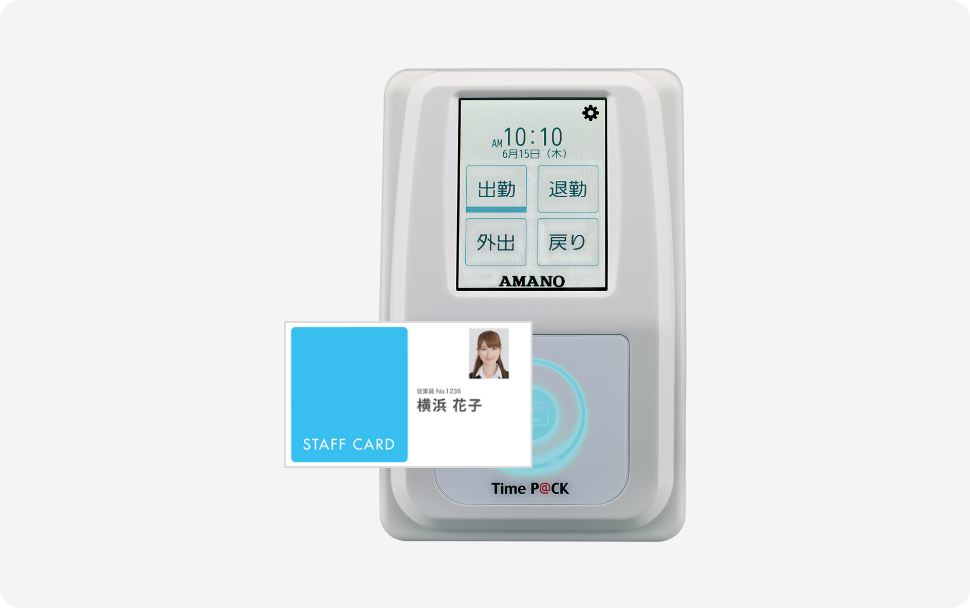 iPhoneをタイムレコーダーとして利用し、従業員はお手持ちの交通系ICカードをタッチして打刻します。普段通勤に使っているICカードをそのまま活用できるので、新たにカードを準備する必要はありません。